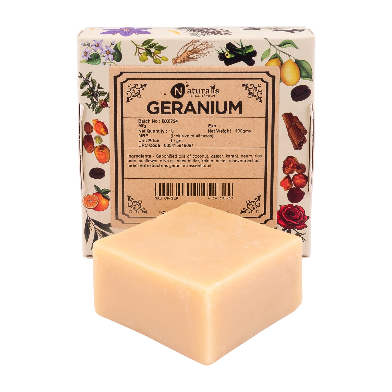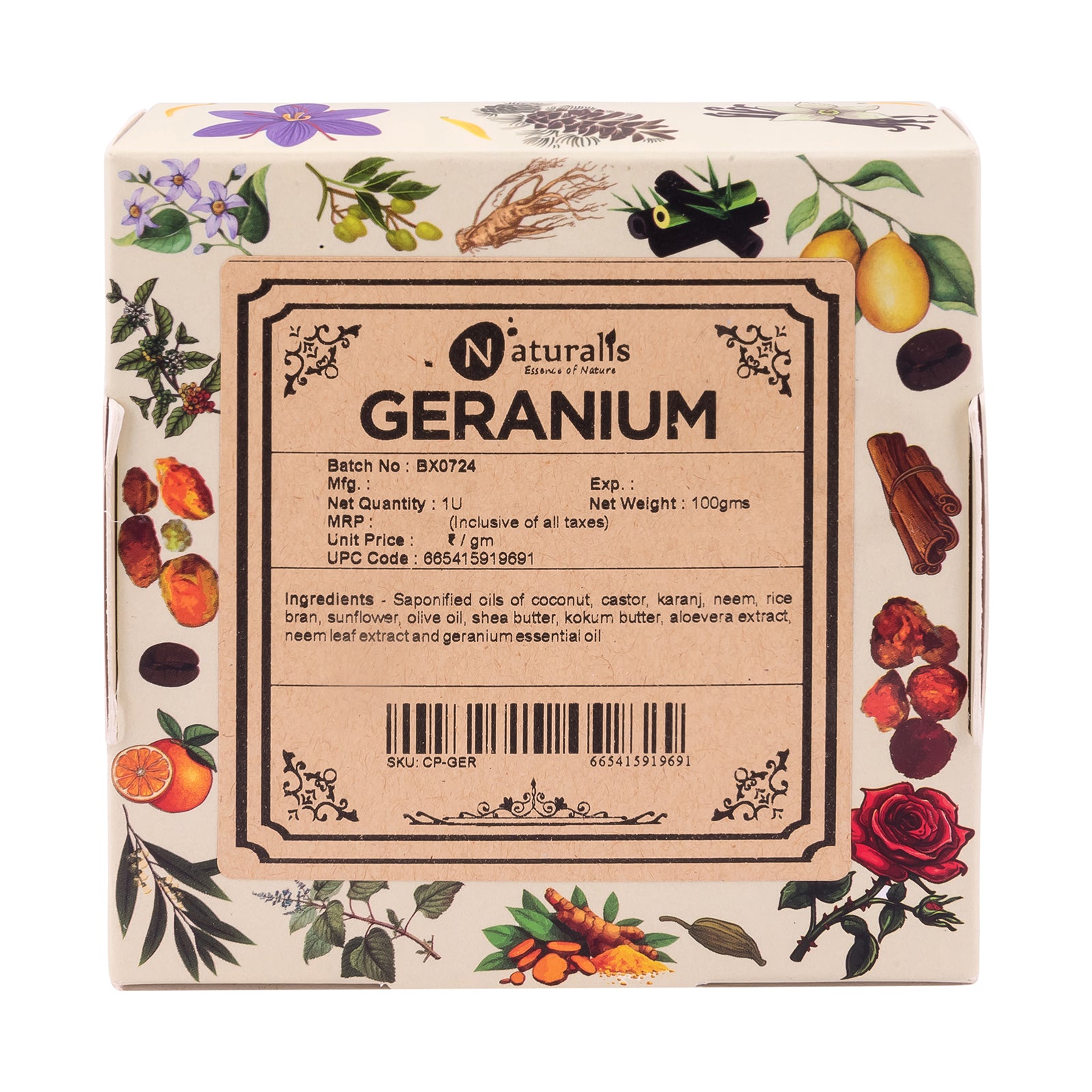 Naturalis Essence of Nature Hand-Milled Luxury Geranium Solid Soap Bar, Made using century-old Cold Process Method - 100gms